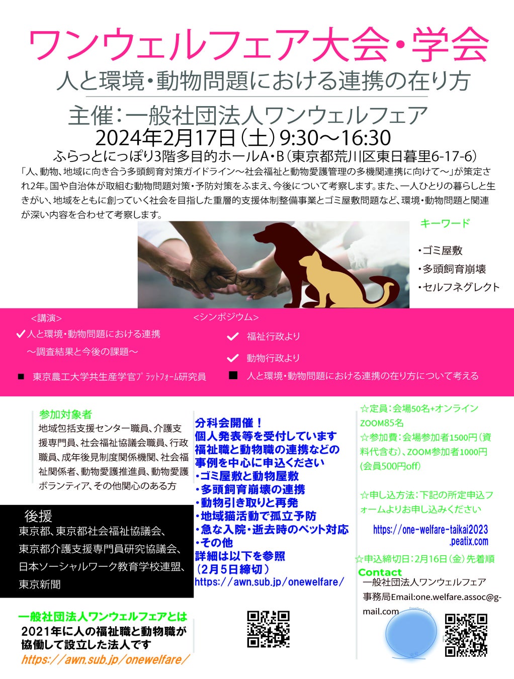 【社会福祉と動物愛護の連携】第2回ワンウェルフェア大会・学会ハイブリッド開催in東京「人と環境・動物問題における連携の在り方」(2月17日)一般社団法人ワンウェルフェア
