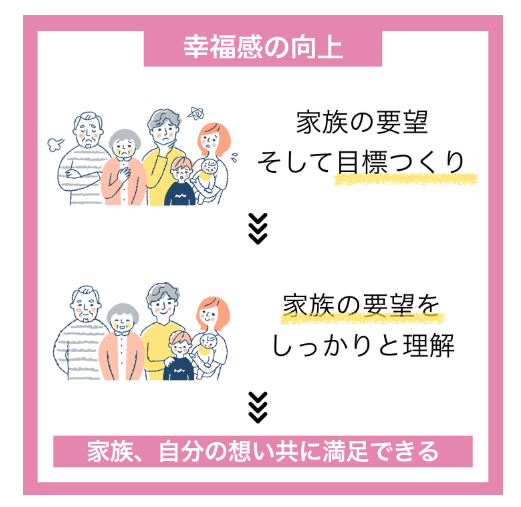 それは、健康状態、精神状態、生活状態においても、ご本人様、ご家族様のご要望を尊重した目標をつくり、ご本人様と定期的にコミュケーションをとりながら、専門的な方法で改善、向上を目指しいくサービスですので、皆様それぞれに安心して満足していただけます。