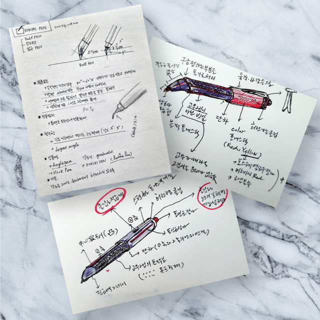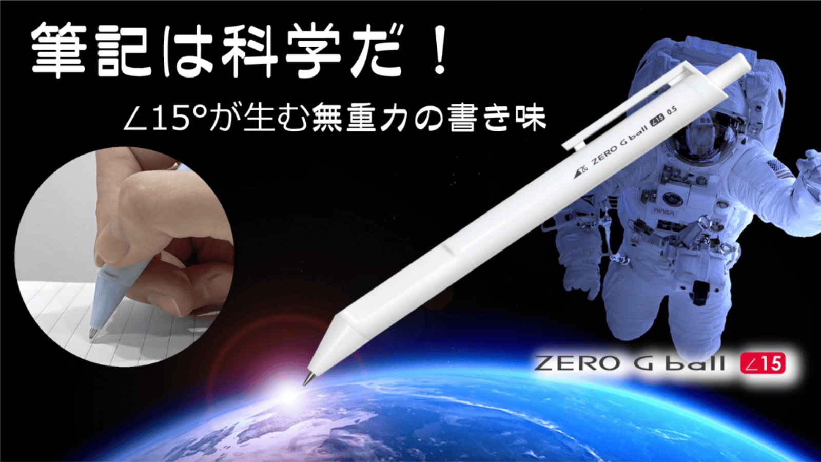 ZERO G ball(ゼロジーボール)∠15は、ペン先を15度に曲げ、まるで無重力かと錯覚するほど軽い筆圧で文字が書け、筆記時の手の負担を大幅に軽減する韓国生まれのボールペンです。