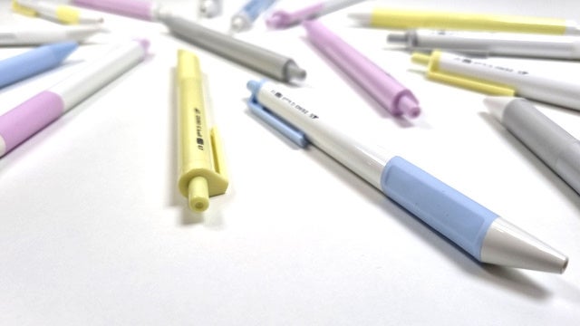一般的なボールペンに比べてペンを押し当てる力が圧倒的に減り、驚くほど軽い筆圧で中のボールが走ります。その感覚はまるで無重力状態です。