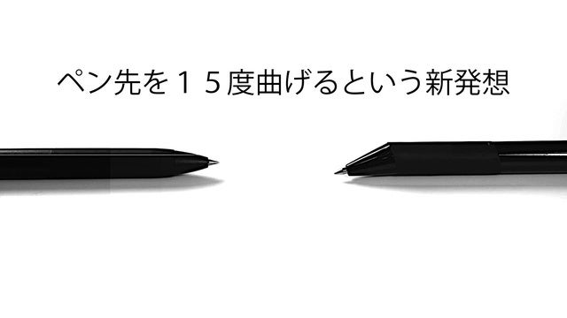 ペン先が15度曲がったボールペン。紙面に対し垂直に力が入るので無重力のように軽い筆圧で書ける。