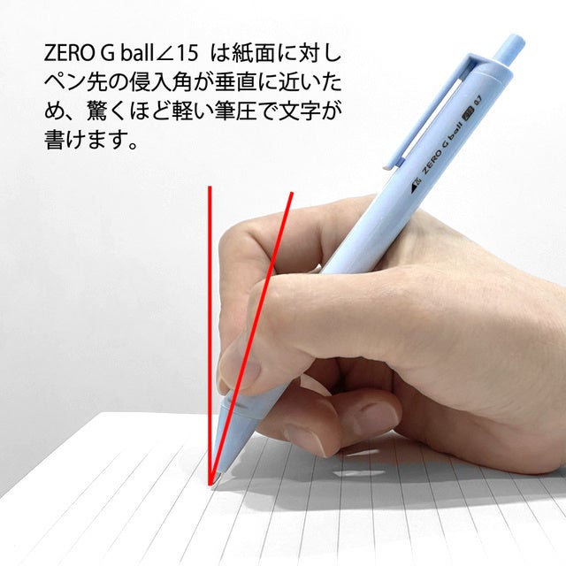 ZERO G ball∠15はその名が示す通り、ペン先とペンの付け根にそれぞれ15度の角度を付けたボールペンです。