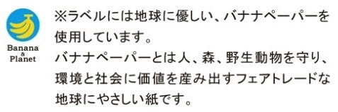 なお、SDGsの取り組みの一環として、製品ラベル・サンクスカード全てにバナナペーパーを使用しています。