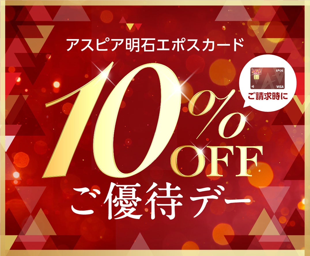 アスピア明石館内でエポスカードをご利用でご請求時に10%OFFになるお得なキャンペーンです。