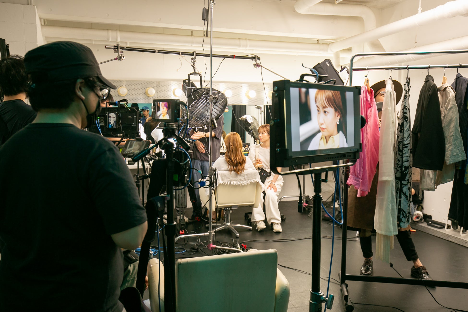 プロのヘアメイクやスタイリストの方にもご出演いただき、 実際のスタジオの楽屋を使用することでリアリティを追求しました。 また、マスクが怒るというユニークな表現を加えるために、製品をブルブルと震わせるギミックも導入しました。