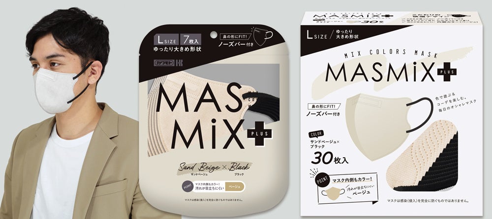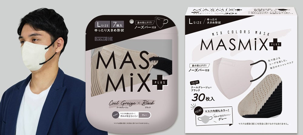 鼻の形にフィットするノーズバー付きの『MASMiX+』が新登場。従来品よりもゆったり大きめの形状と落ち着いたカラー展開で男性も使いやすいデザインです。