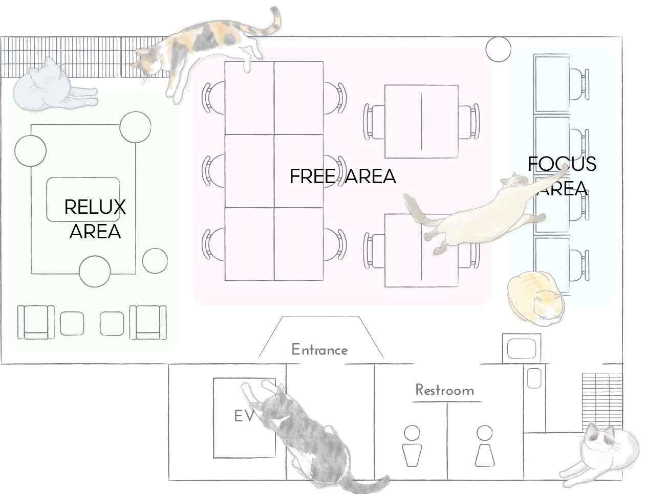 何より、仕事場という日常生活の一部を保護猫活動の場所にすることで、保護猫活動に興味がある特定の人だけではなく、賃貸住宅でペットを飼うことができない人など、幅広い層の人たちに参加していただける場所にしたいと思っています。
