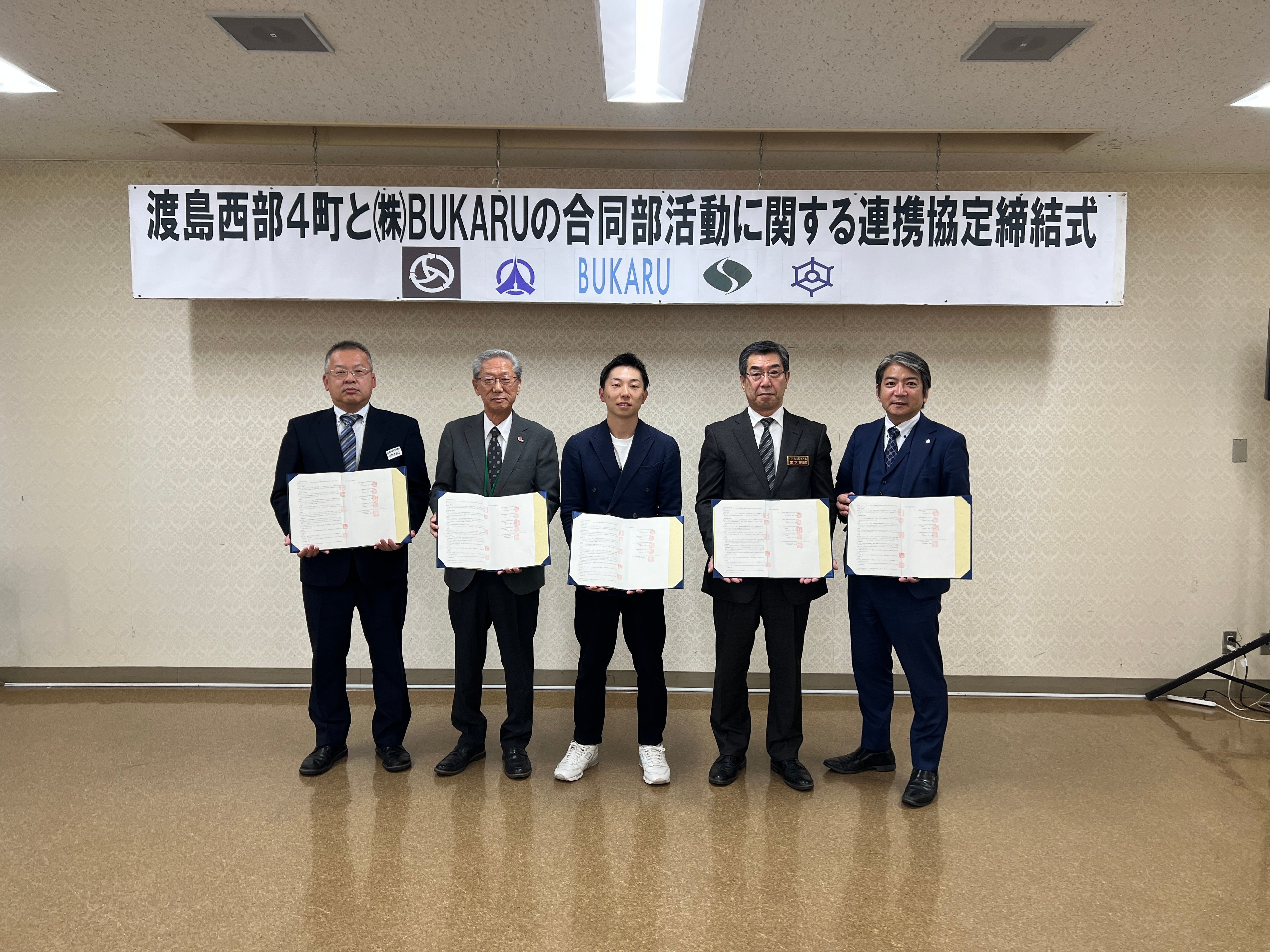 北海道の4町(木古内、知内、福島、松前町)と株式会社BUKARUが合同部活動に関わる連携協定を締結
