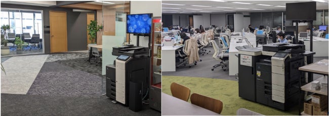 ・アクセスしやすい場所に配置されるため複合機を利用しないオフィス滞在者への認知形成も可能
