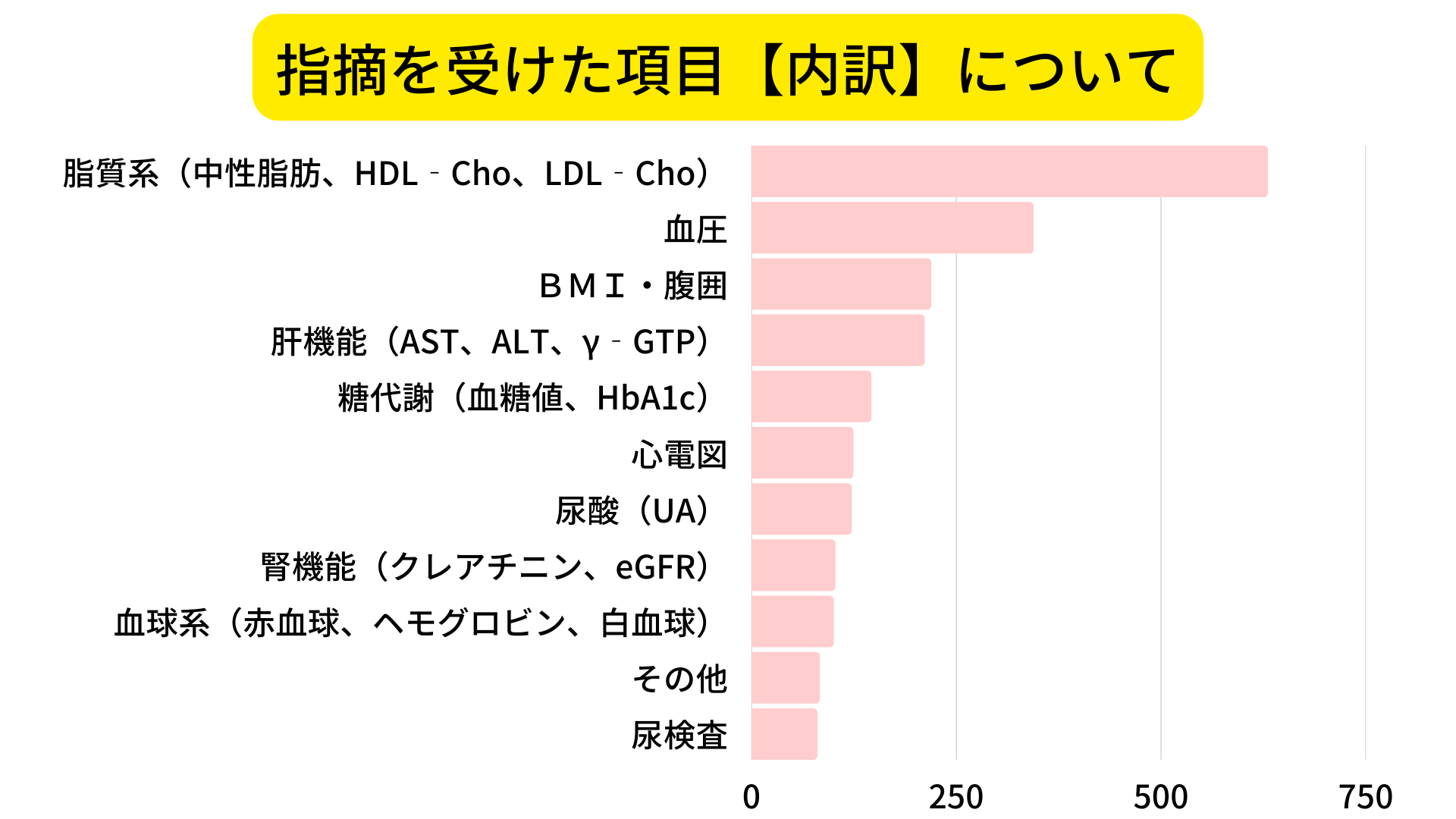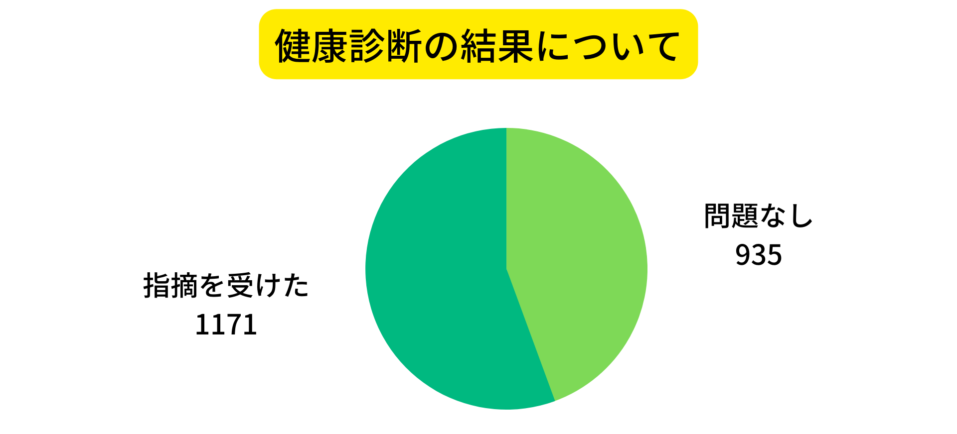 健康診断の結果で指摘を受けたことがあるかどうか調査しました。