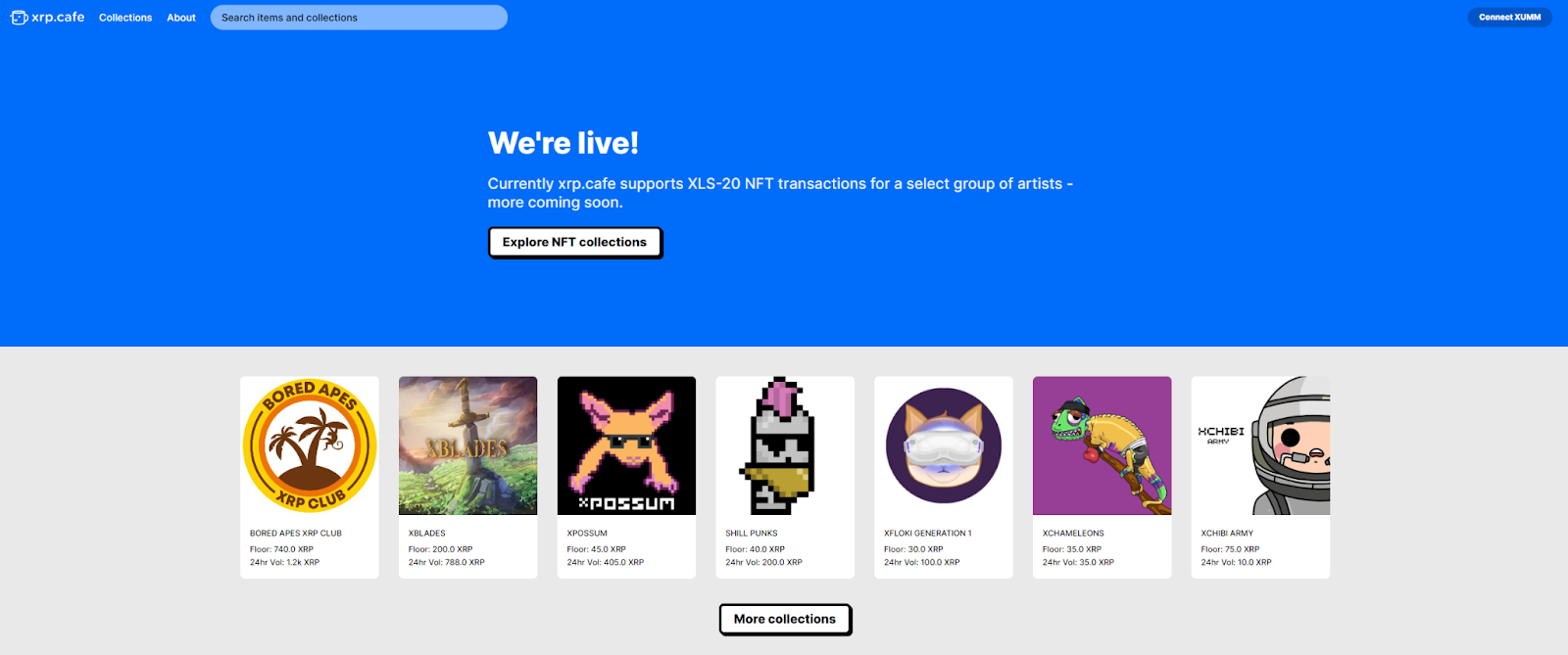 上記3つのプロジェクトのNFTを購入できるNFTマーケットプレイスはxrp.cafe(https://www.xrp.cafe/)です。発売は近日中を予定しております。