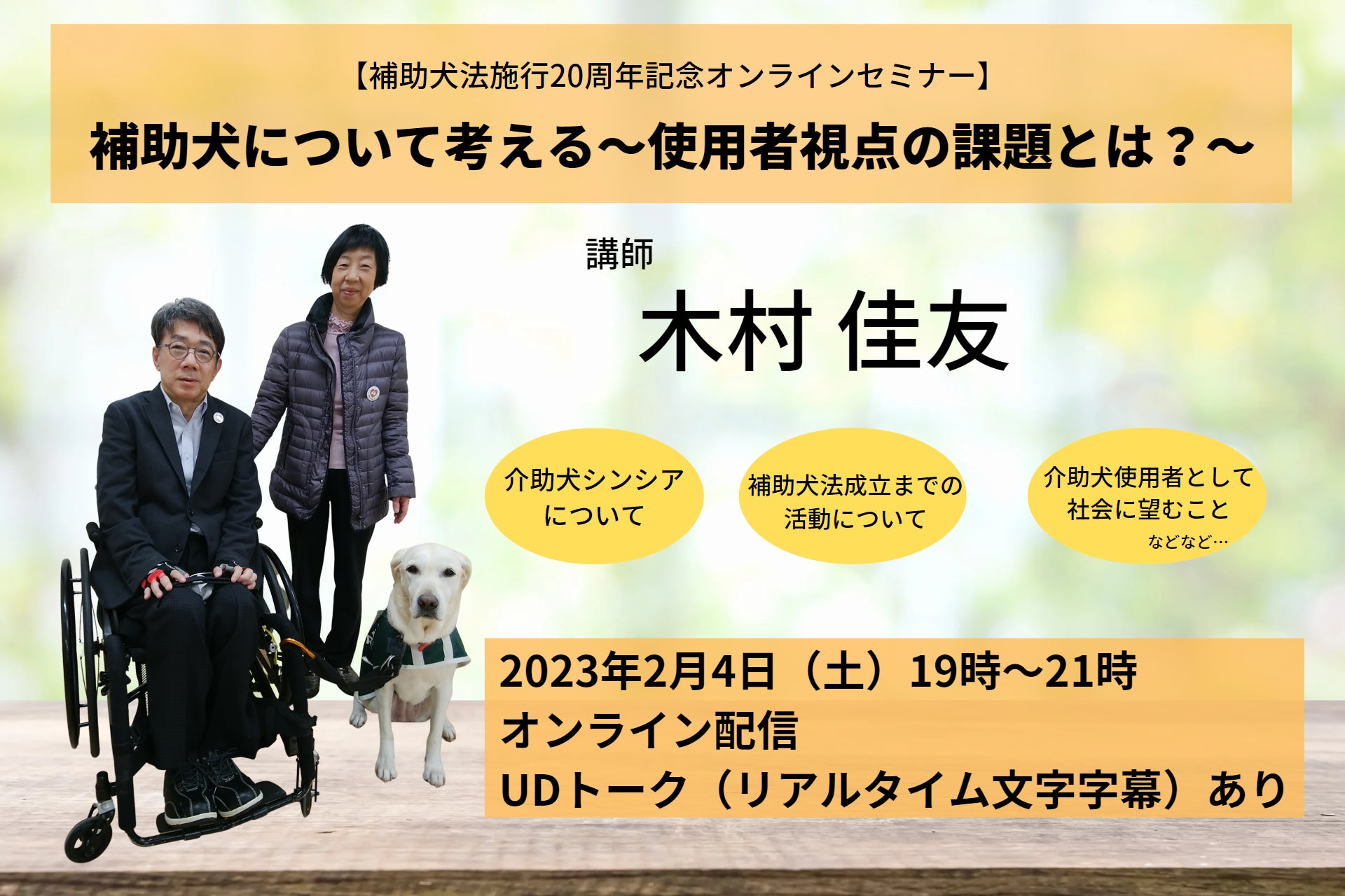 【2023年2月4日開催】身体障害者補助犬法施行20周年企画「補助犬について考える」オンラインセミナー開催決定!
