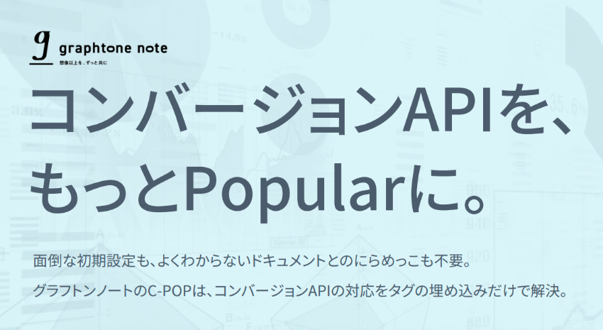 マーケティングとテクノロジーの力で顧客のビジネスを支援する株式会社グラフトンノート(代表取締役:矢野 哲快・鎌田 真行、本社:東京都渋谷区、以下当社)は、Facebook広告をはじめとする各Web広告媒体のコンバージョンAPI対応を、タグの埋め込みだけで解決するコンバージョンAPI対応ツール「C-POP」を2022年11月10日より正式リリースいたします。