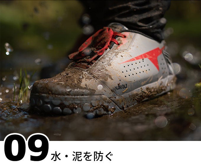 大きな衝撃を受け止める足首をしっかりサポート。足を入れた時に丸まらず、スッと履ける形状にもこだわりました。※A-LINEのみ