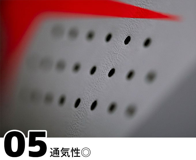 レーザーカットによる穴あけ加工により通気性も抜群!