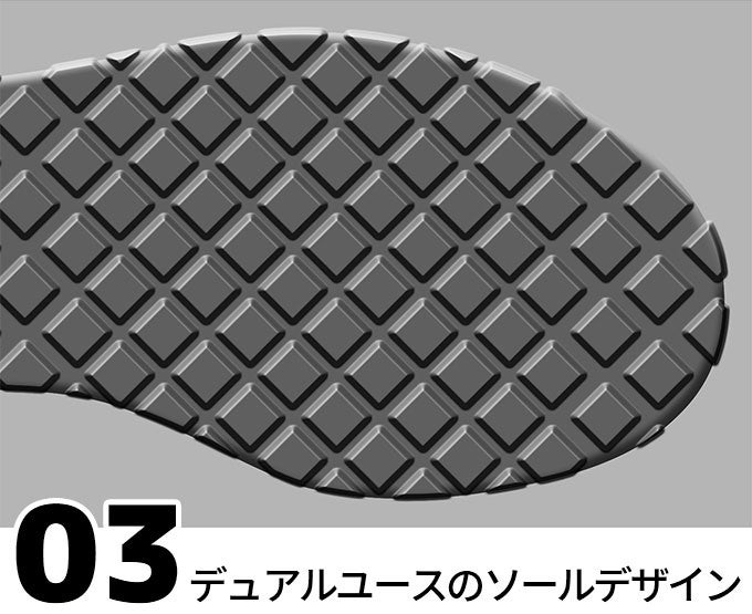 ソールの溝は、ペダルのどの位置にも置けるデュアルユース・デザイン。