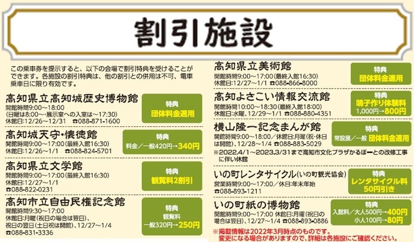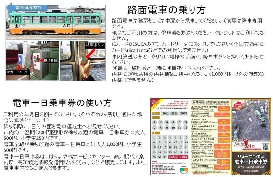 ◎バス・路面電車一日乗車券:https://www.tosaden.co.jp/info/onedayticket.php