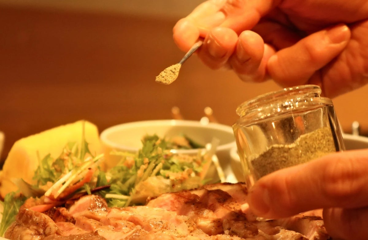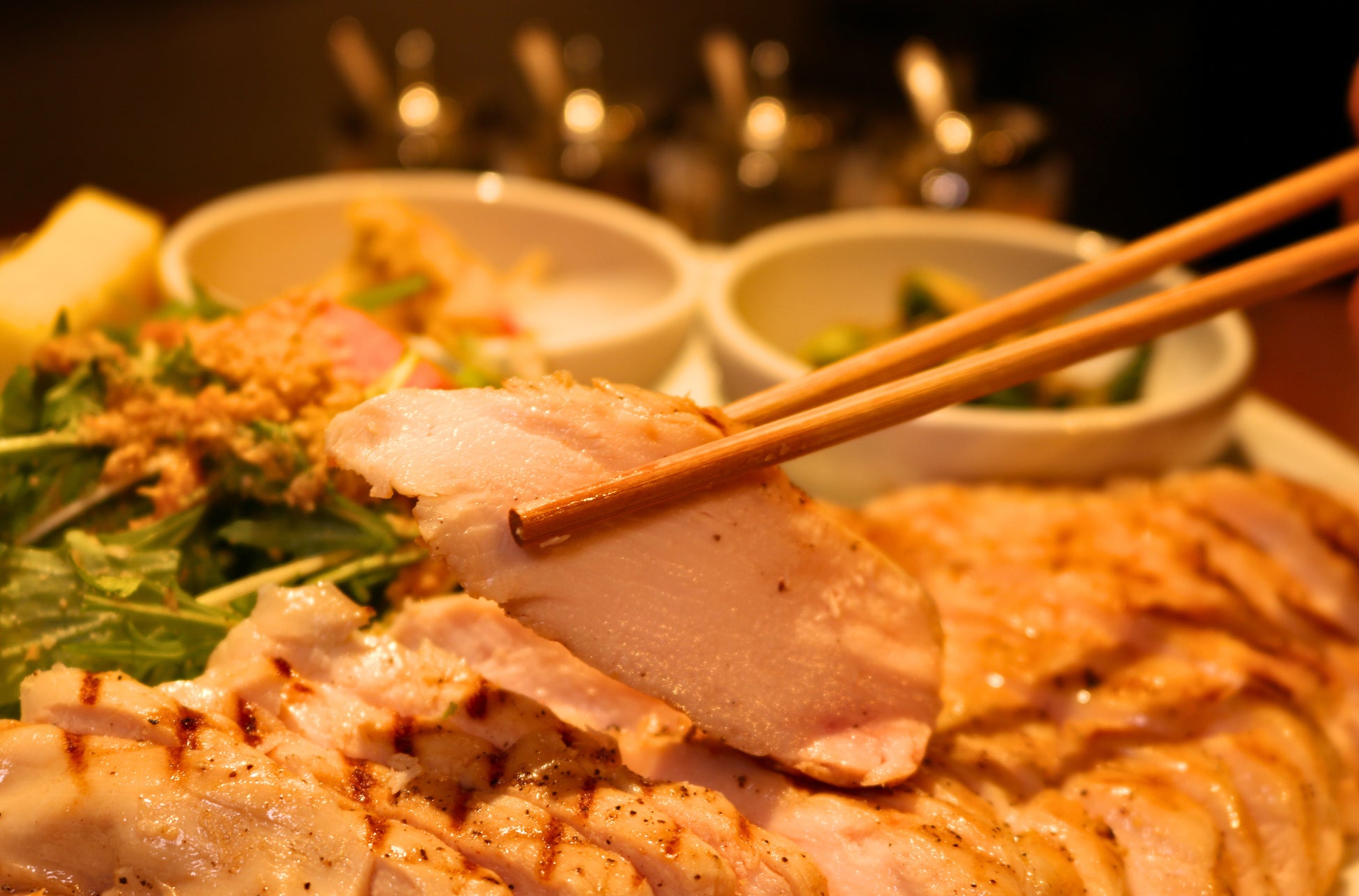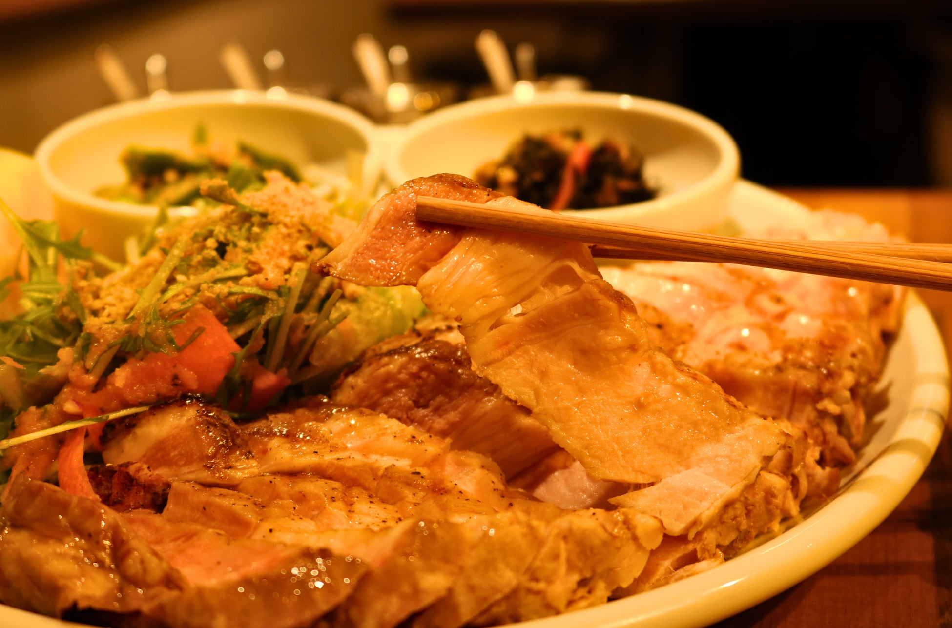 『やきとん木々家』の栄養定食ランチは、メイン、サラダ、小鉢、ご飯、味噌汁、食後のパイナップルなど食べる人の明日以降のコンディションまで考慮したオールインワン定食です。低温調理と独自の加熱方法で仕上げた豚ロース肉または鶏胸肉のどちらかをお選びいただけます。