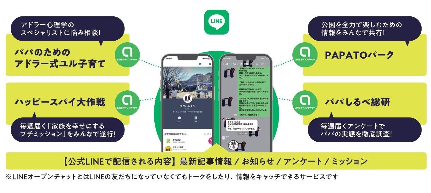 パパに「いつでも・どこでも」繋がるチャンス!オープンチャットを活用して、互いに支え合い&励まし合い子育てライフを満喫するための仕掛けが満載のコミュニティを開設。