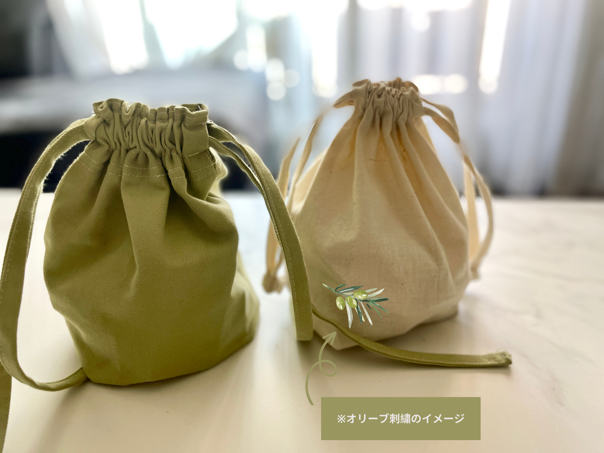 そして今回はリターンのひとつとして、同じくシリア難民の雇用についてトルコで立ち上がった「Fease」とコラボした、オリーブ手刺繍入りのギフト袋もご用意しています。シリア人のお母さんたちが、真心込めて縫った美しい刺繍をぜひお楽しみください。