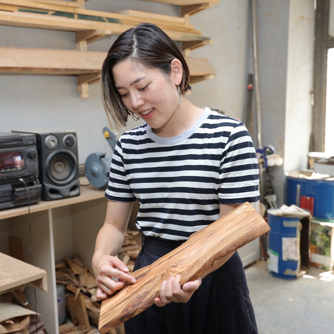 今年5月より日本のウェブサイトでの商品販売を本格的に開始し、少しずつ工房の生産量も増えてきました。生産を進めるうちに気づいたのは、木は切れ端の部分がどうしても残ってしまうということ。どうにかして生かすことはできないか、と考えた時につみきにすることを思いつきました。