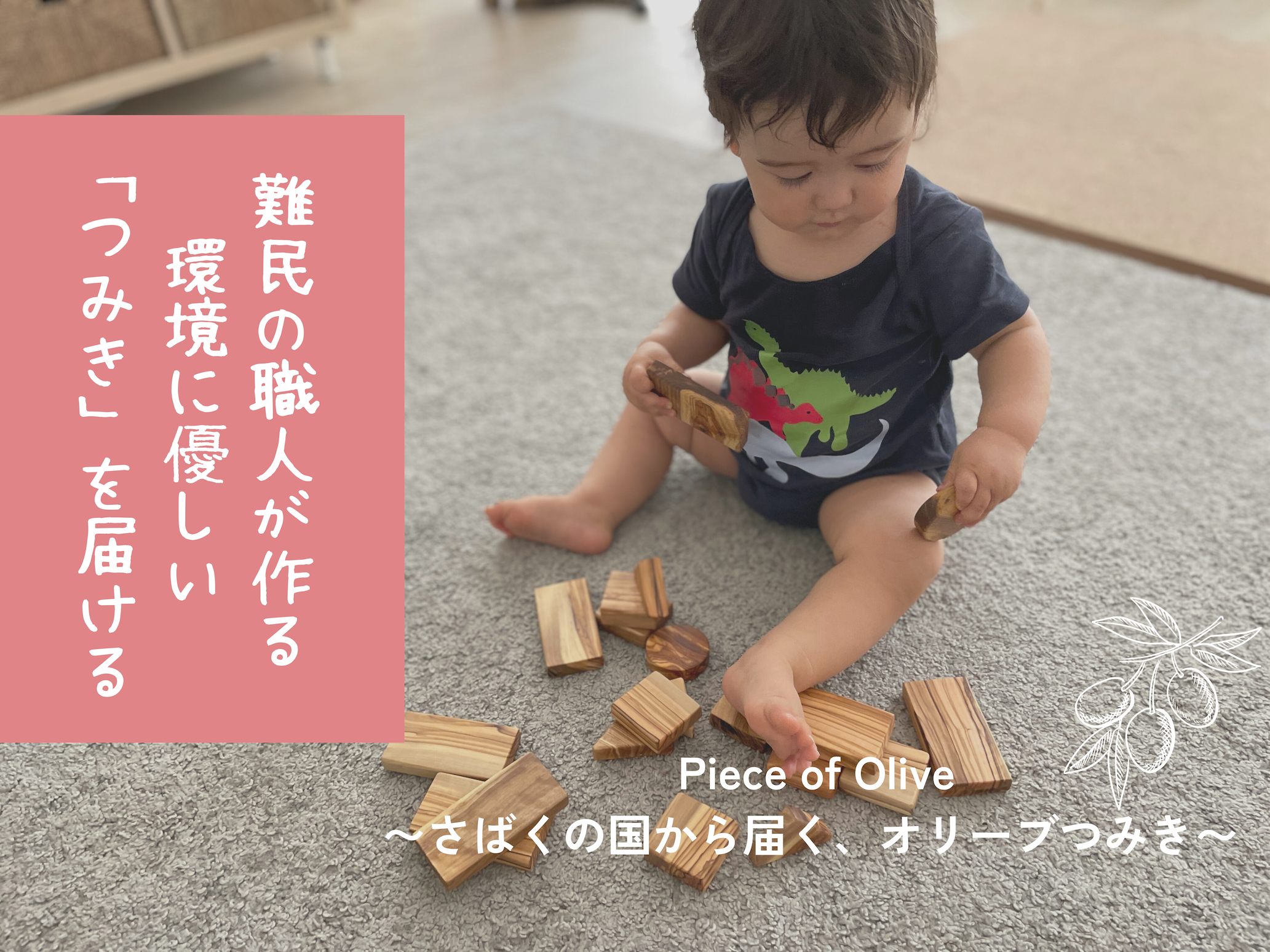 難民の仕事を作り、環境にもやさしいオリーブの木片を使った 「Piece of Olive〜さばくの国から届く、オリーブつみき〜」をクラウドファンディングを通して販売します。