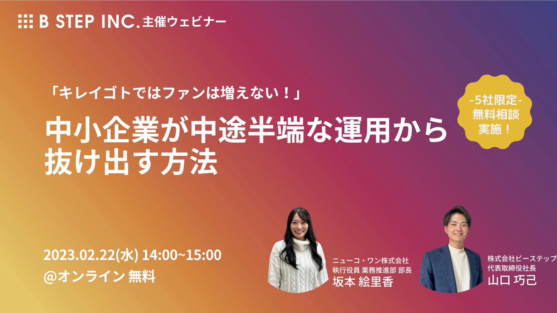 *参加者特典として、先着順にて「【5社限定】個別SNS相談」をご用意しております。