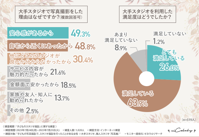【子どもの記念撮影は映え写真で取りたい!】ママ1,020人 に聞いた、大手スタジオと個人スタジオ利用について比較調査!写真にこだわりたいならどちらがおすすめ?