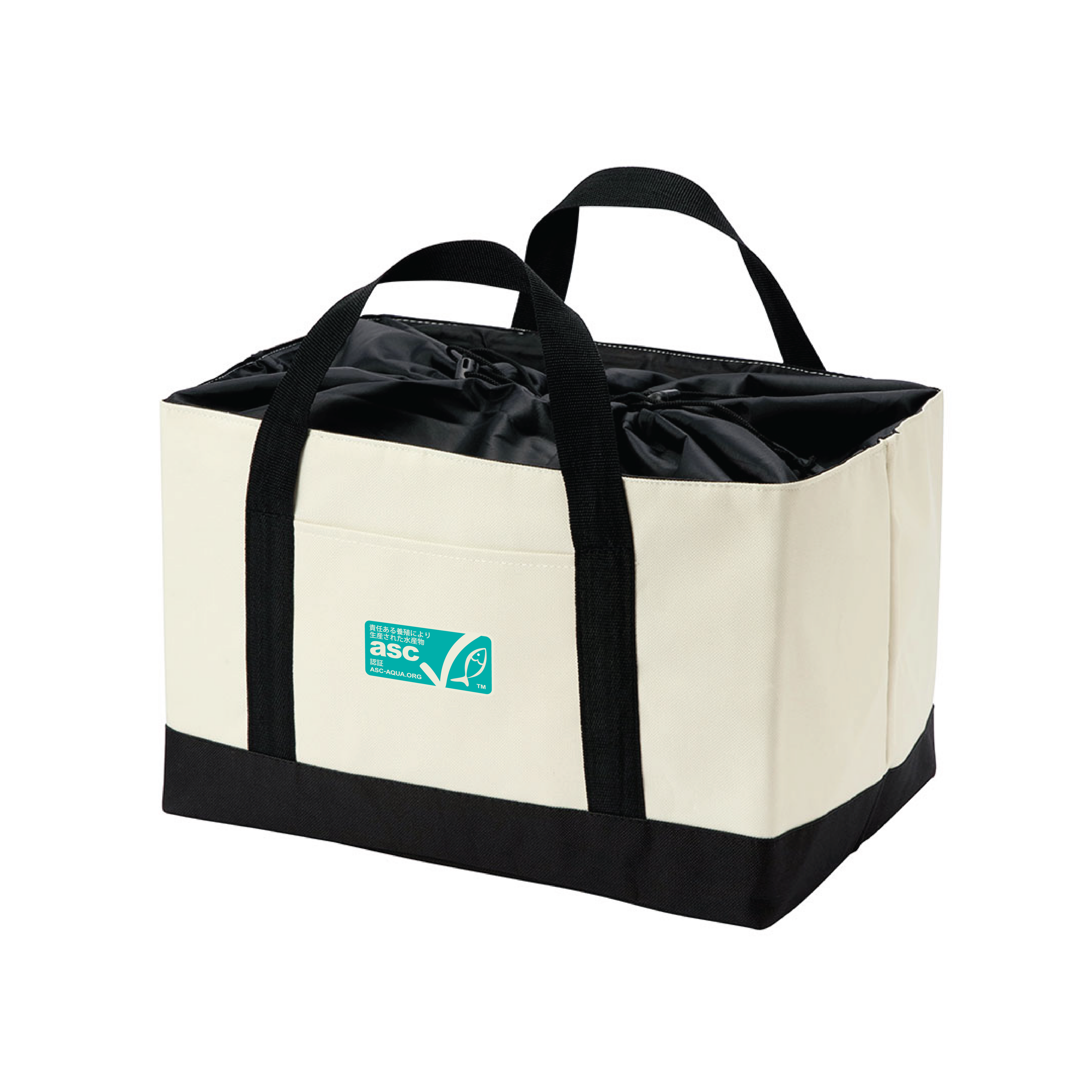 スーパーのレジかごはもちろん、自転車かごにもすっぽり収まるサイズ。買った物を詰め替える手間がなく、ショッピングを楽々スマートに。バッグの内側は保冷温効果のあるアルミ蒸着加工で、食品の適温をキープ。水産物を購入の際も助かる救世主!
