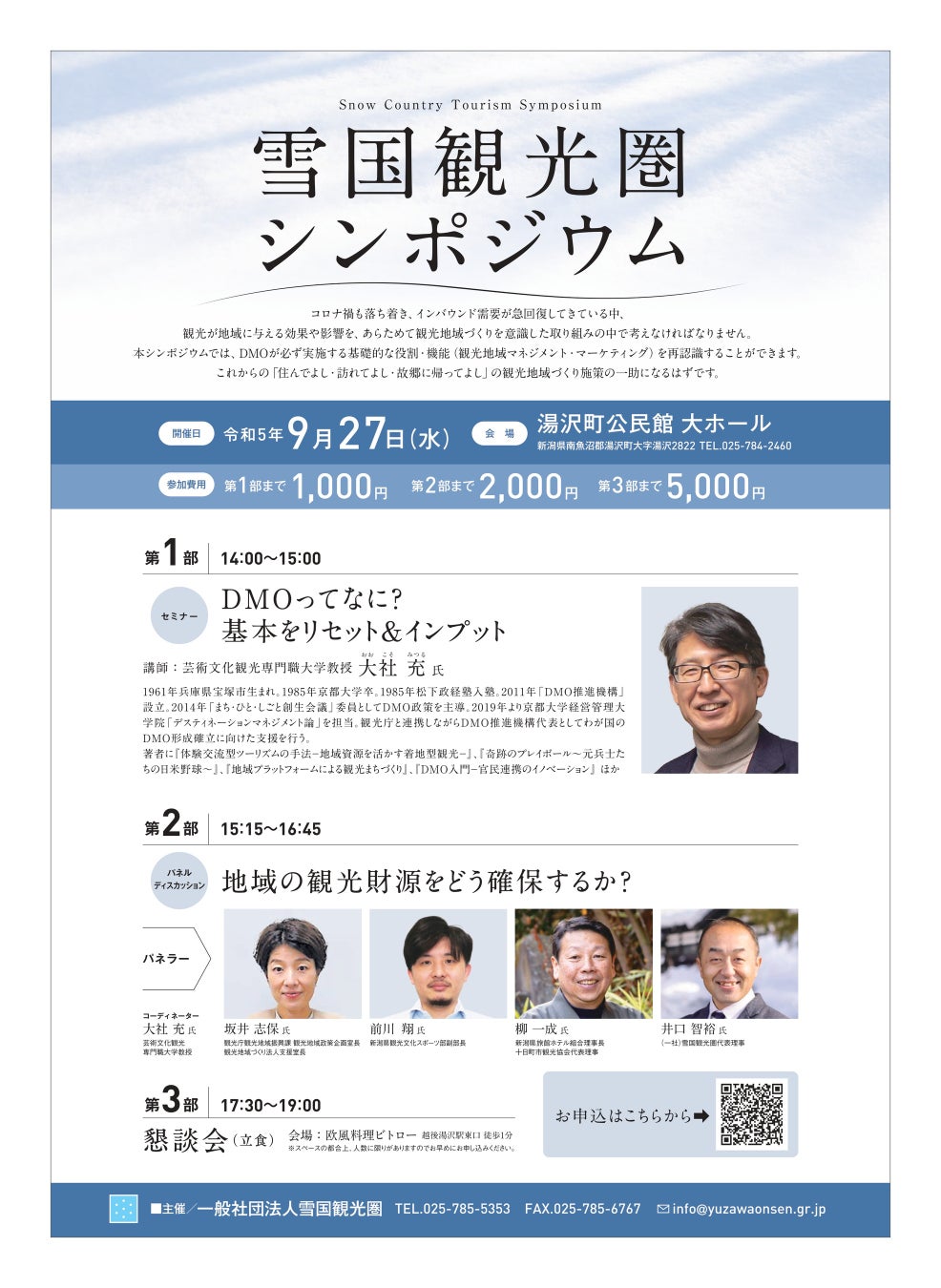 コロナ禍も落ち着き、インバウンド需要が急回復してきている中、あらためて観光地域づくりを意識した取組を進めなければなりません。そこで、町市民・行政・民間事業者の皆様にあらためてDMOの役割とは何かをリセット&インプットして頂き、「住んでよし・訪れてよし・故郷に帰ってよし」の観光地域づくり施策の一助になればとの想いから「雪国観光圏シンポジウム」を開催することと致しました。