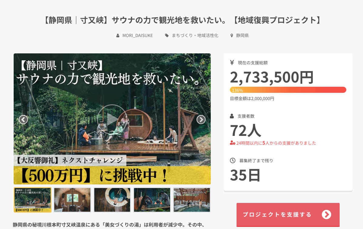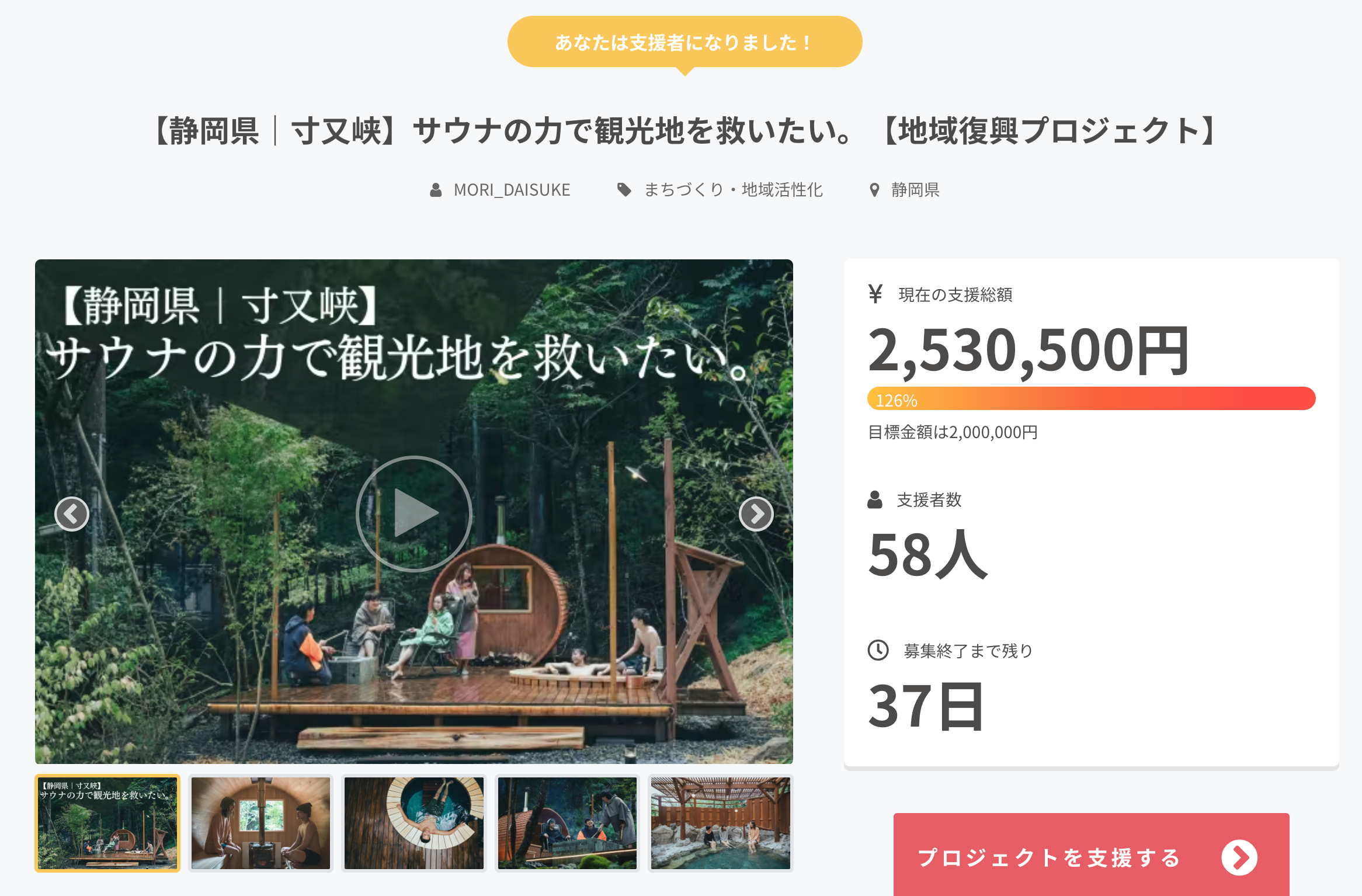 【クラウドファンディング総額200万円達成!】静岡県寸又峡温泉をサウナの力で救いたい。【地域復興プロジェクト】