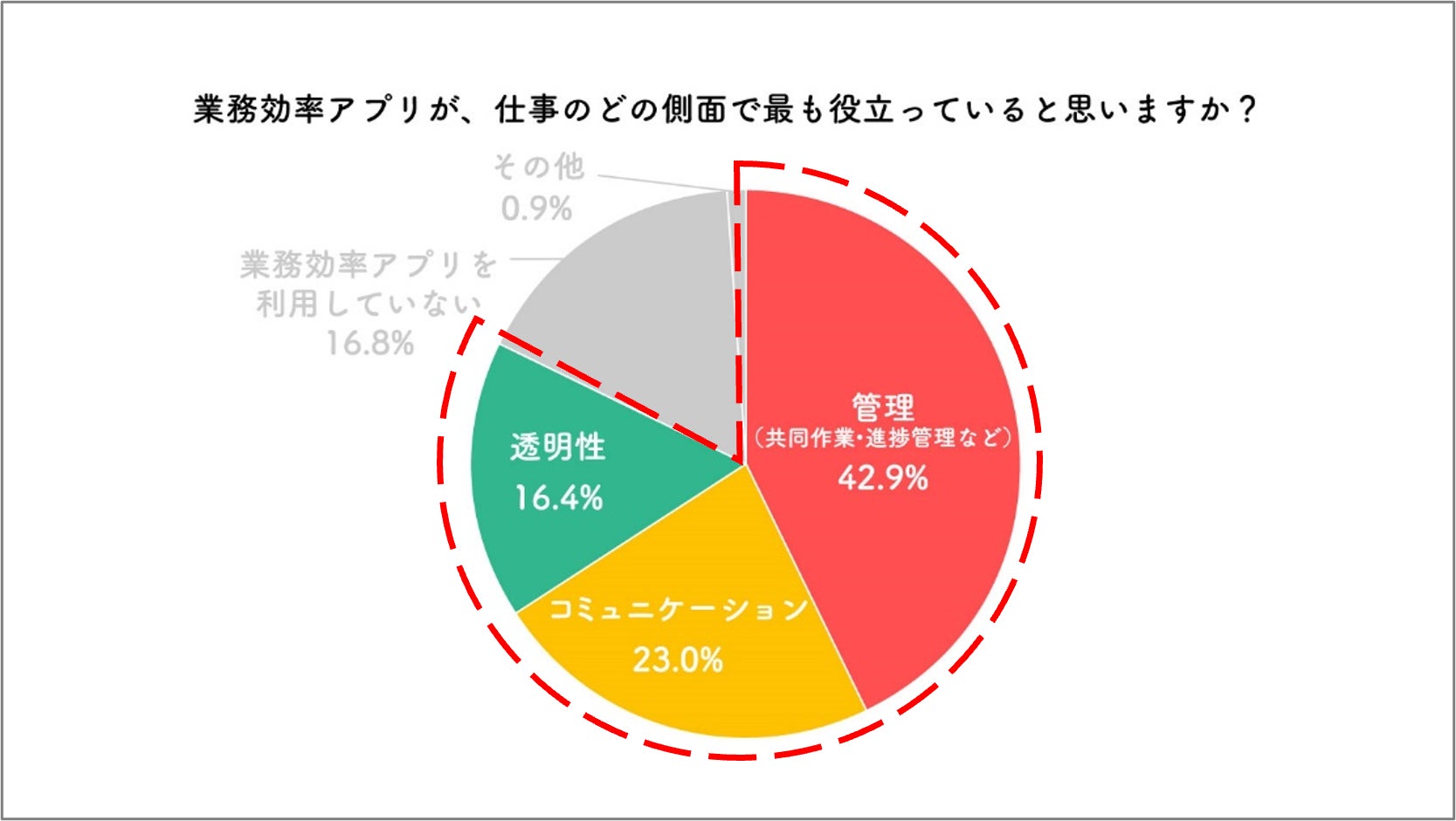 ▪業務効率アプリ役立つ場面「管理」が42.9%!コミュニケーションを取ることにも役立っている!