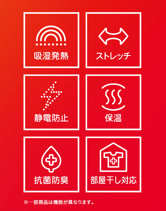 秋冬に着るインナーだから「あたたかければOK」というのはすでに過去の話。素材開発が進んだことで、今や、あたたかさだけでなく、様々な機能を備えるようになりました。例えば、吸水速乾の機能は、室内外の温度差による汗や蒸れに役立ちますし、静電防止の機能はニットを着た時などに起こる不快な静電気を軽減してくれます。ただ、触れただけではその機能は分かりづらいもの。パッケージやタグを見て、確認するようにしましょう。