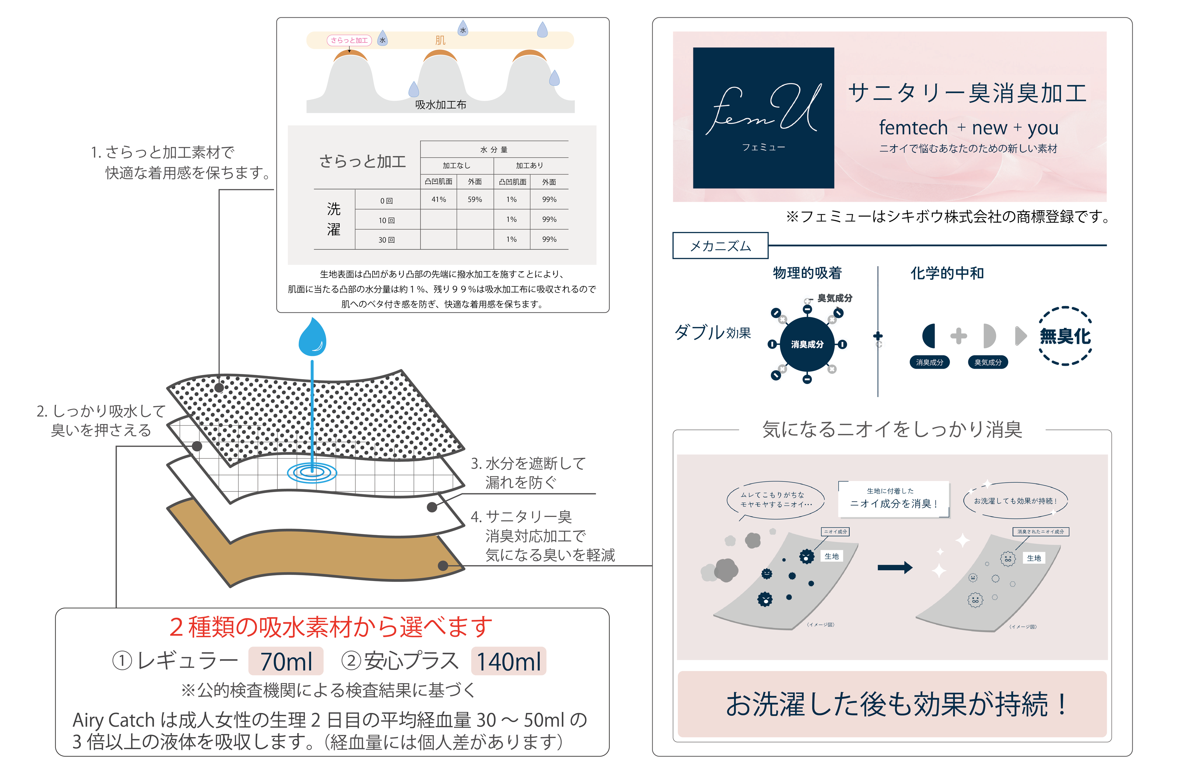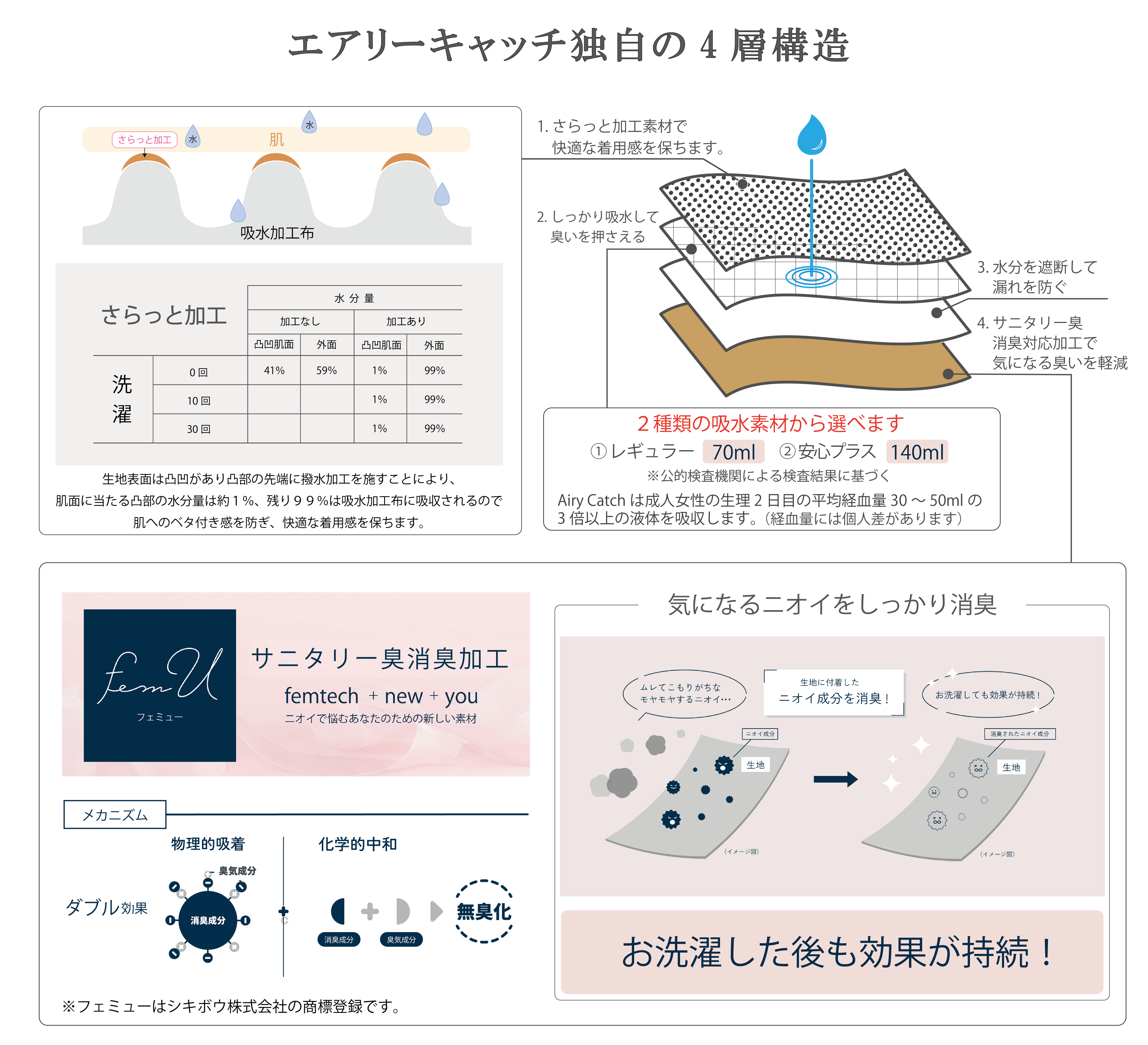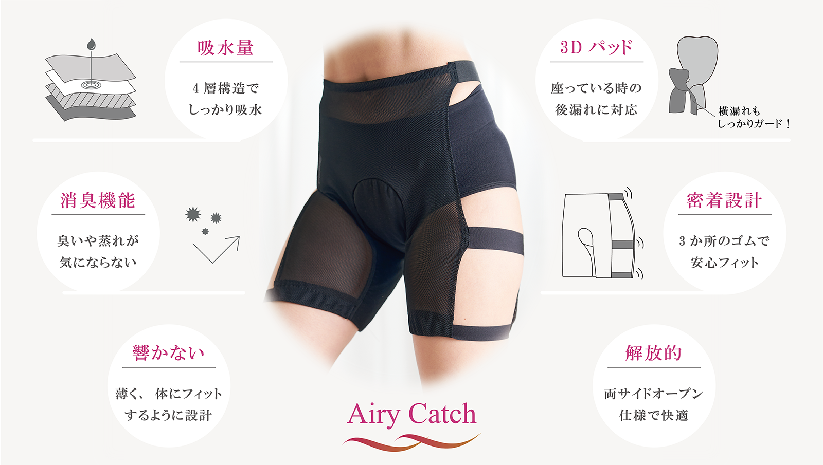 生理日や多い日に!独自構造3Dパットで内股まで水分をキャッチ、モレを防ぐオーバーショーツ「エアリーキャッチ」の販売開始!