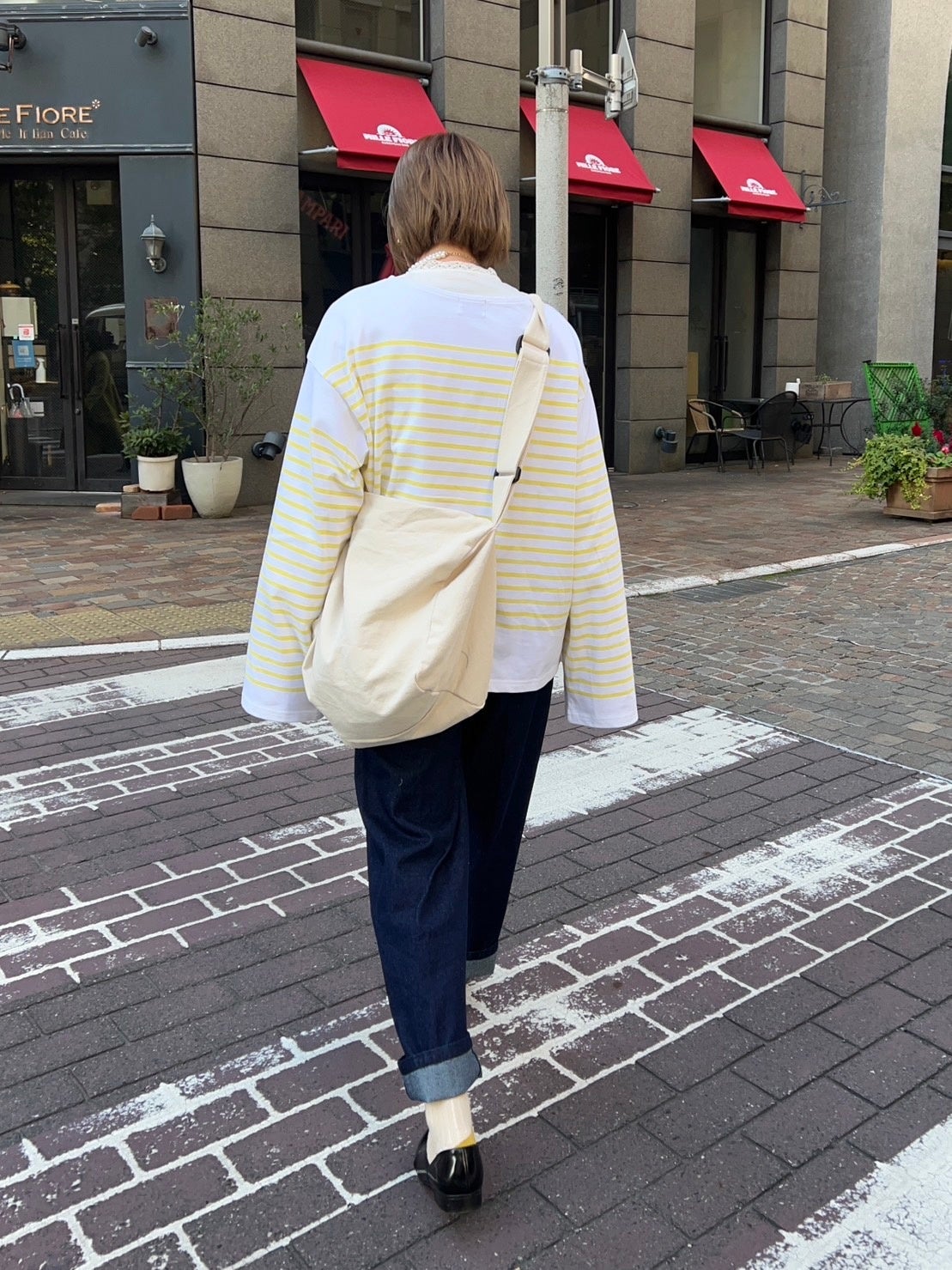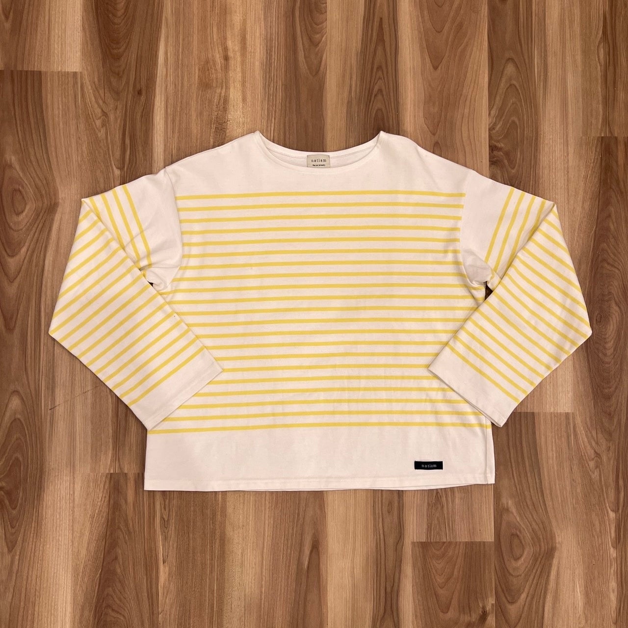 体型を拾わないオーバーサイズなのに首周りはスッキリと見えるように計算されたシルエットで人気のバスクシャツ。