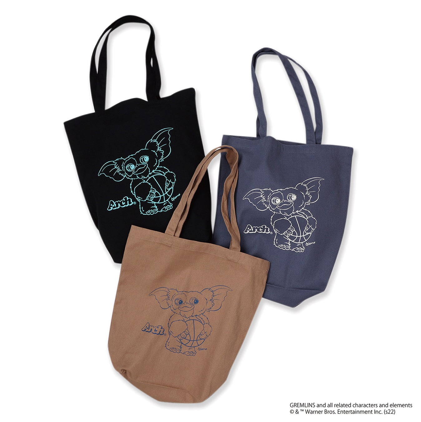 遊んでほしそうにバスケットボールを抱えている「ギズモ」をプリントしたトートバッグ。