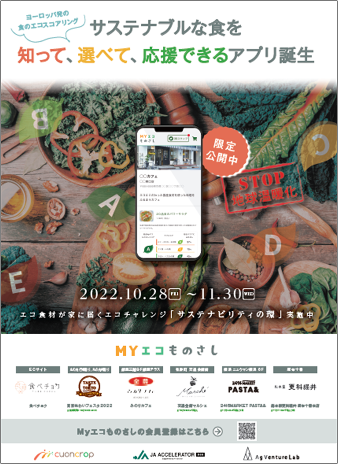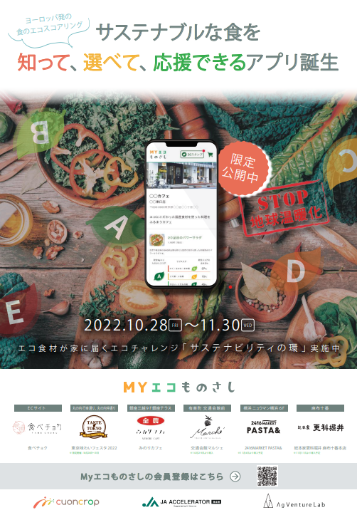 Stop 地球温暖化!ヨーロッパ発の食のエコスコアリングアプリ「Myエコものさし」、首都圏一部地域で先行公開を開始