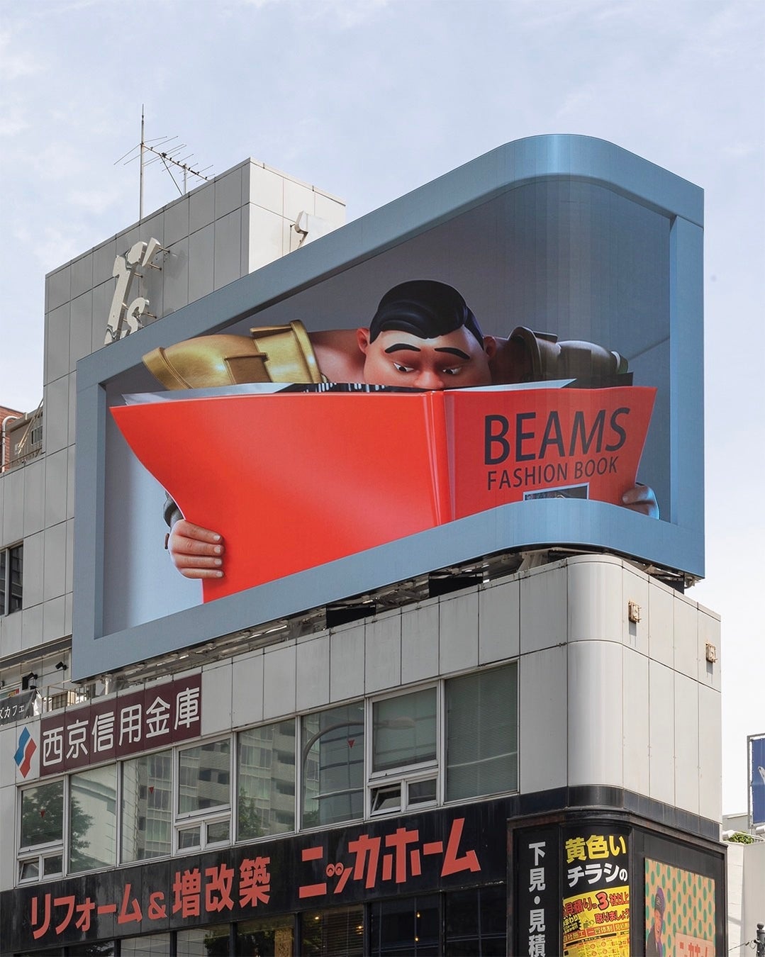 BEAMSは、原宿が創業の地であり、現在日本とアジア地域に約170店舗を展開しており、CHANGE ViSiON HarajukuのBEAMSの裸眼3D映像は観光名所の一つになるほど撮影スポットになっています。