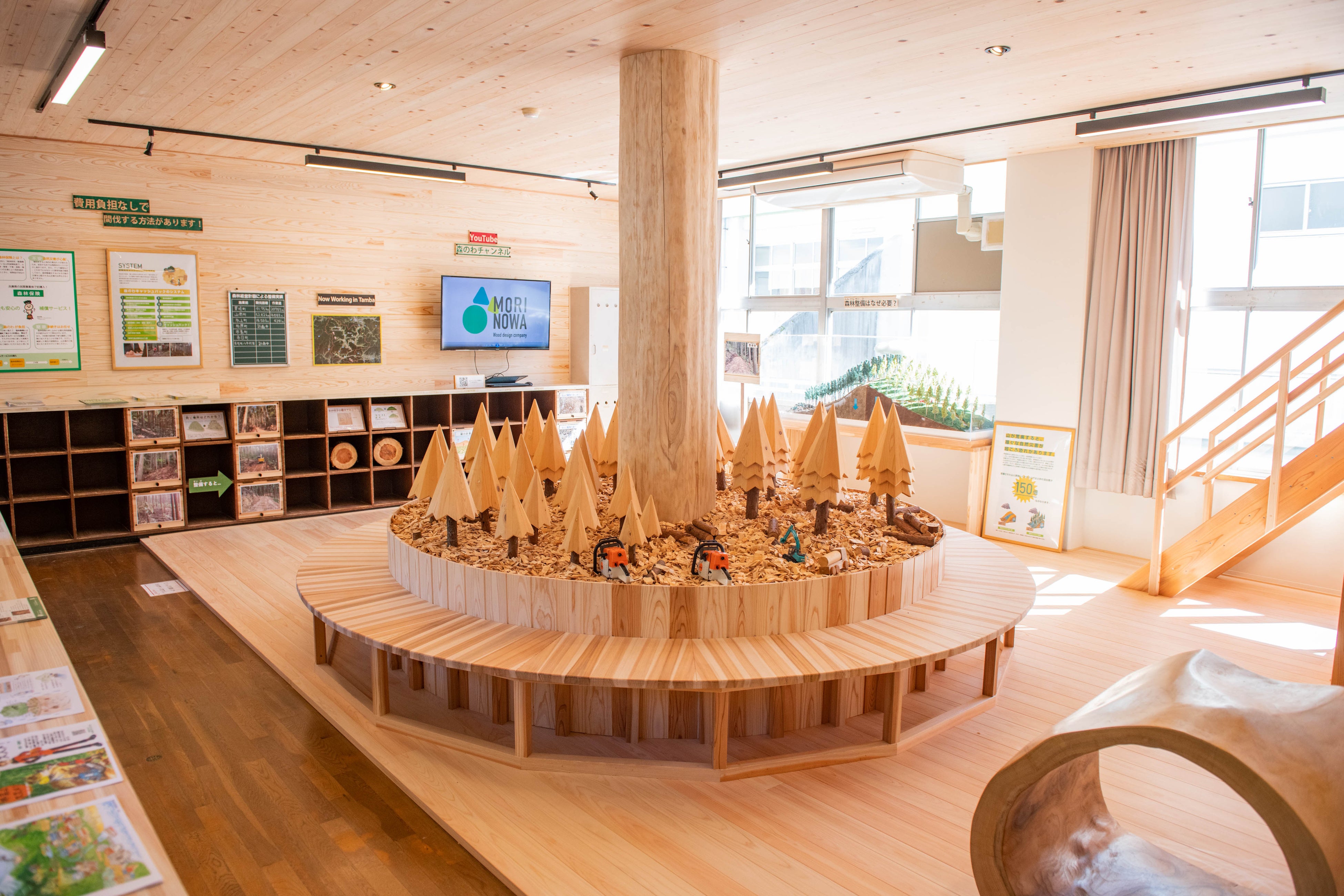 2022年10月、『森の情報発信基地』をコンセプトに施設の一部をリニューアル。林業関係者だけでなく地域を巻き込んで森林資源の利活用を推進していくことで、山林を負の遺産とすることなく、里山における持続可能な循環型社会の形成を目指しています。