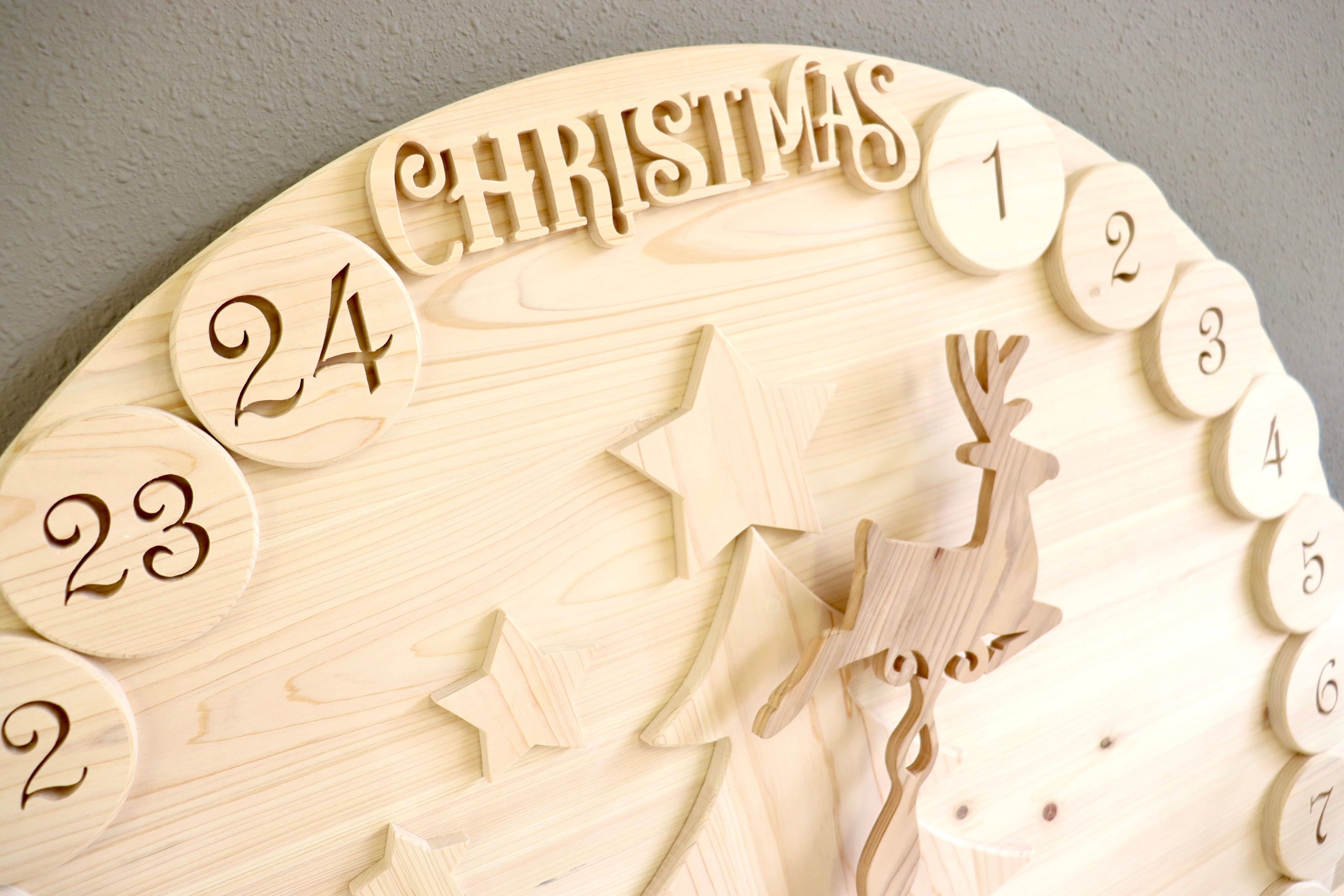 丹波産スギ・ヒノキの無垢材で制作した、 直径1mの木製アドベントカレンダー