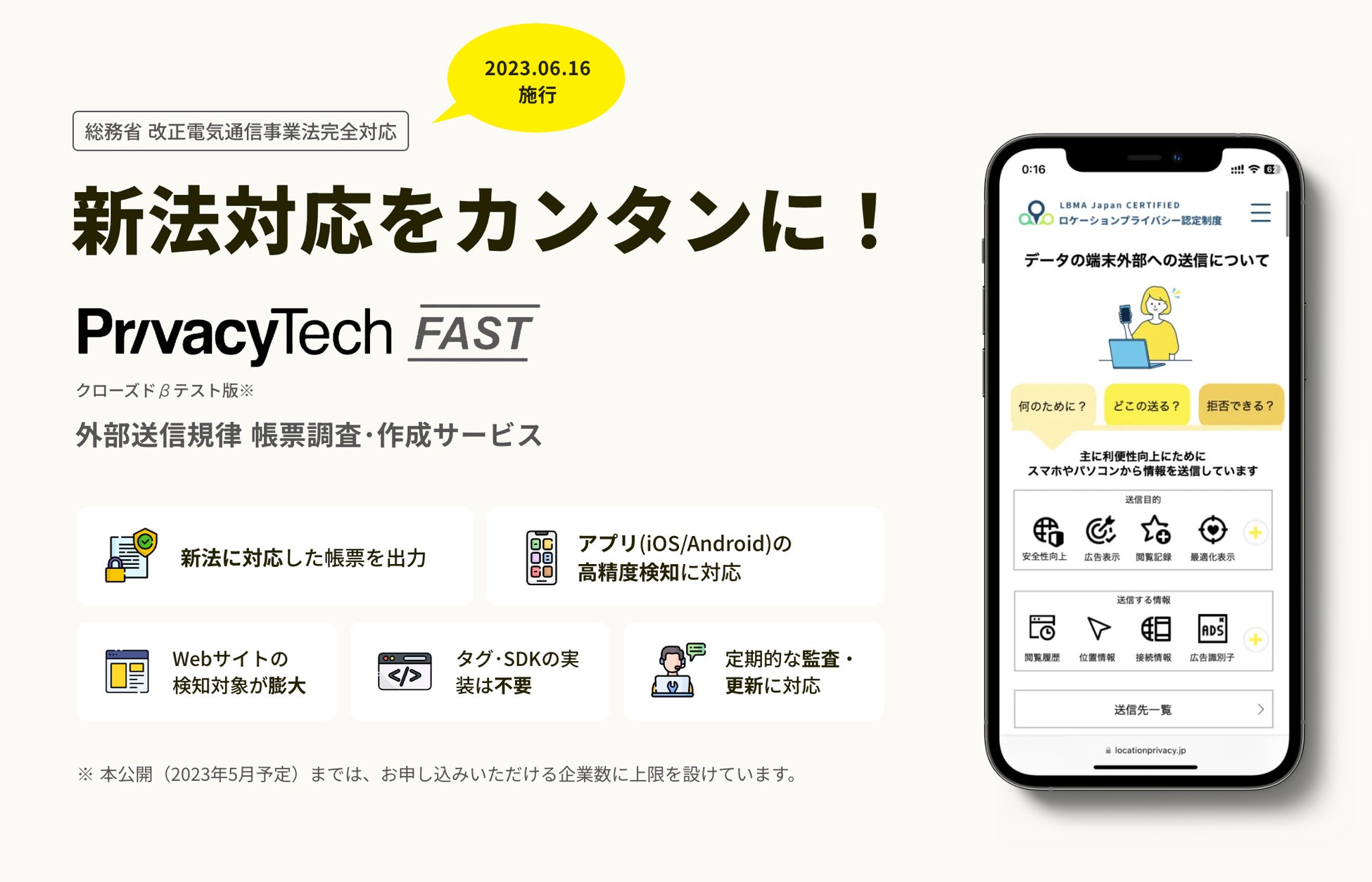 【改正電通法・外部送信規律対応】帳票作成・監査サービス「PrivacyTechFAST(β)」《導入企業&販売パートナーの受付を本日開始》