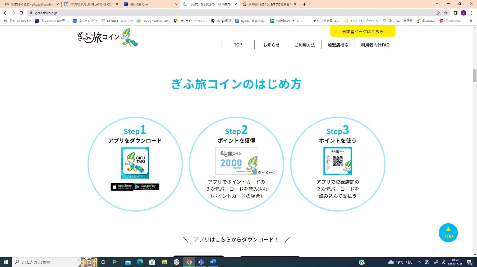 「ぎふ旅コイン」アプリによる電子スタンプラリー。