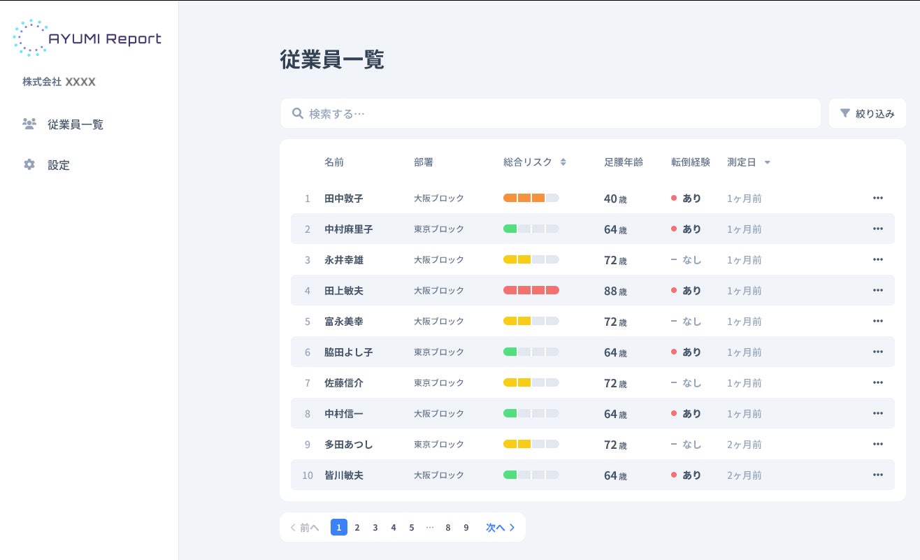 そこで、JR東日本環境アクセス・東京事業所にて勤務する社員を対象に、AYUMI Scanによる定期的な測定および個別フォローアップを行い、労災リスクの予測と改善に取り組む実証実験を行います。