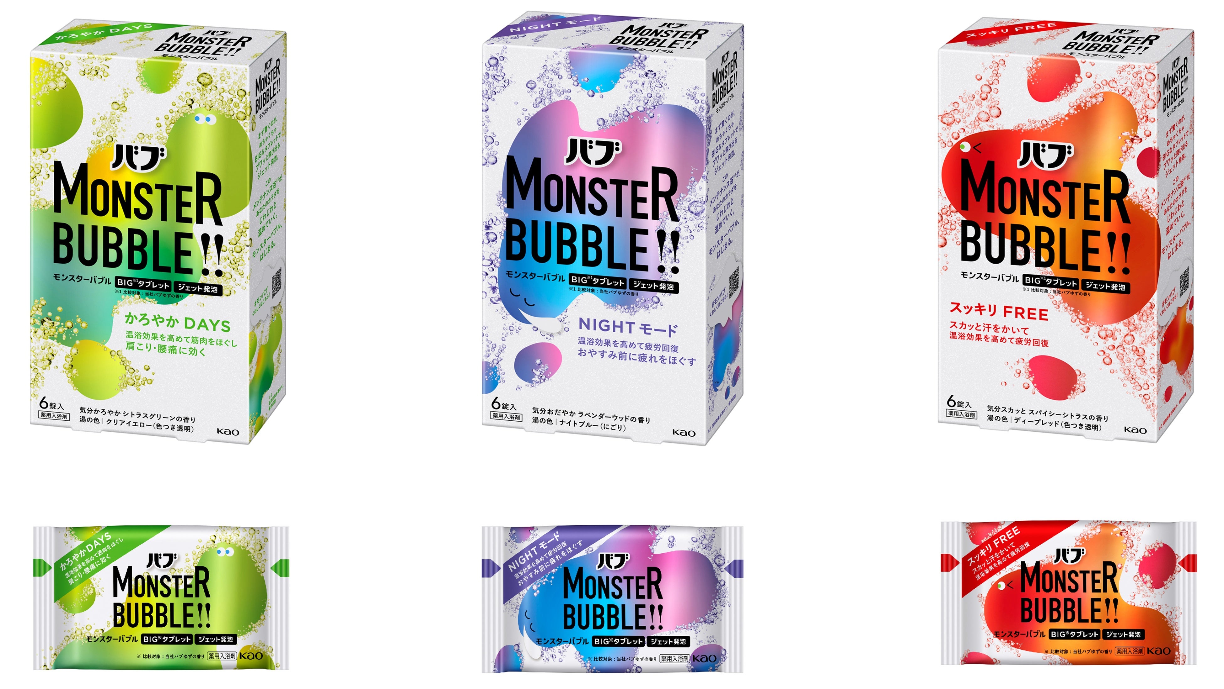 BIG(※1)なタブレットで、湧きたつような炭酸のジェット発泡の『バブ MONSTER BUBBLE』。