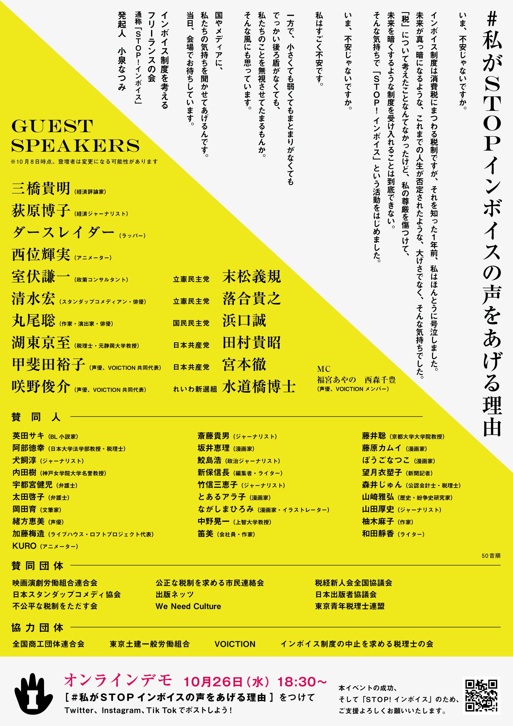 インボイス制度を考えるフリーランスの会(通称「STOP!インボイス」)主催