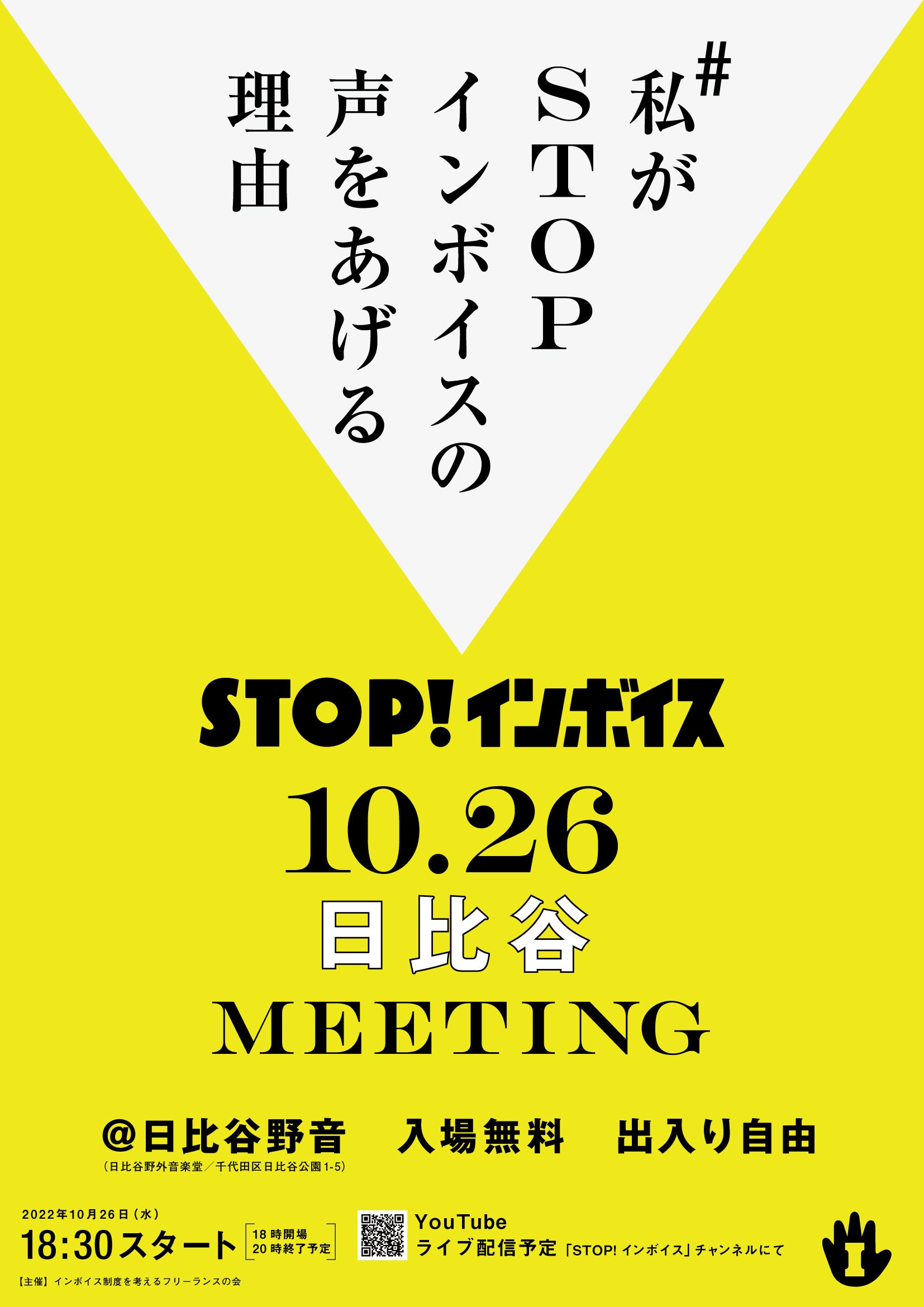 「#私がSTOPインボイスの声をあげる理由(わけ)10.26 日比谷MEETING」第一回発起集会 10月26日(水)日比谷野音にて開催決定