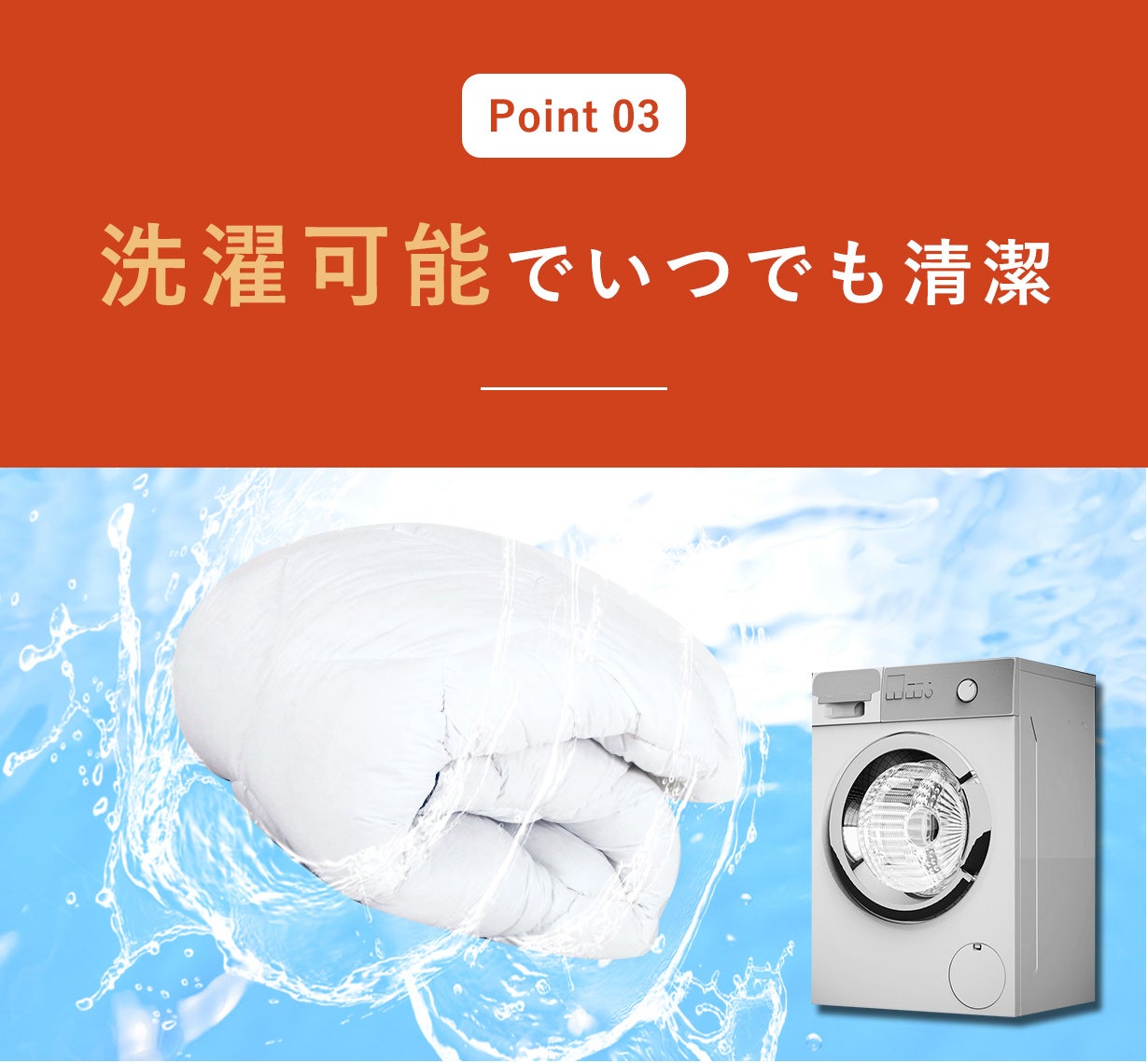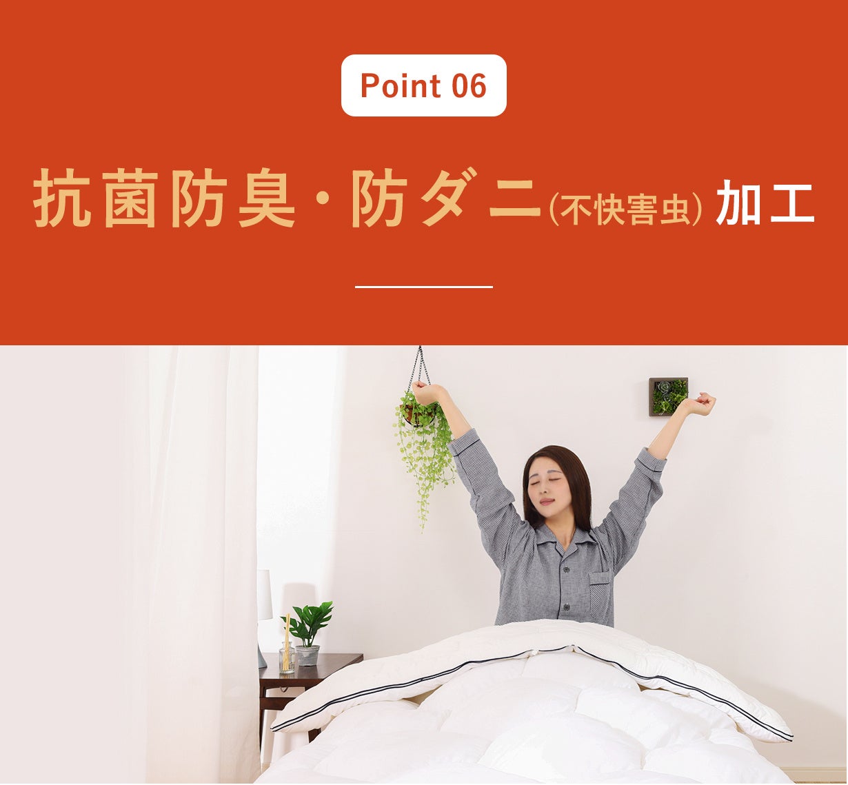 抗菌防臭効果で細菌の増殖を抑え、寝具を清潔に保ちます。