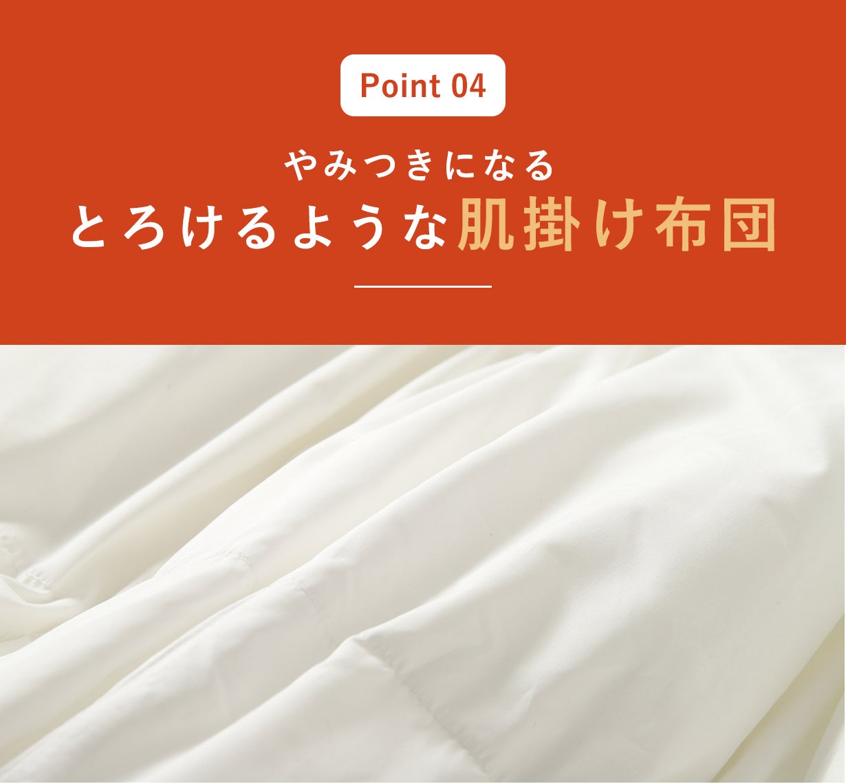 肌掛け布団は、まるでマシュマロのような肌触り。