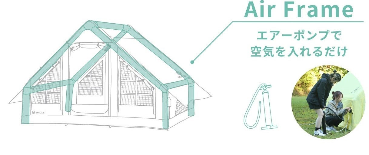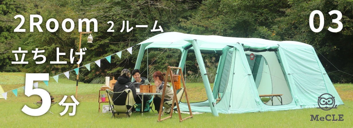 Laplace Eureka Association株式会社は10/21(金)10:00よりMakuakeにて、「かわいい、おしゃれ、簡単」に特化した新アウトドアブランド『MeCLE』のエアフレームテント3種を主としたキャンプギアの注文受付を開始いたします。エアフレームテントは、どれもあっという間に設営・撤収ができることが特徴で本来のキャンプ時間を多く確保することができます。『MeCLE』は、おしゃれや自分らしさを求める方達へ自然の中に自分の空間を作ってほしいという理念のもと生まれたブランドです。
