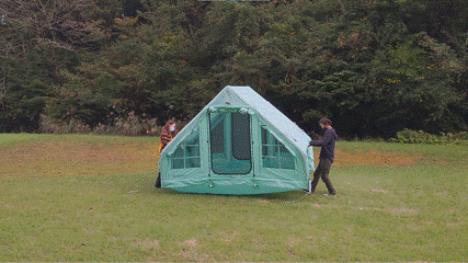 - 空気を入れるだけだから楽しく、手軽にテントを設営。